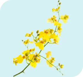 私の好きな花はオンシジュームというランの一種です。子供の頃シンガポールに住んでいたので、ランはとても身近でした。黄色いものが有名で、一つ一つの花を見ると女性がスカートを穿いて踊っているように見えるので別名ダンシングレディともいいます。束で咲いていても美しく、一つの花を見ても愛らしい、元気がもらえる花です。